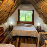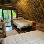Ideal para familias o grupos, esta cabaña ofrece dos plantas de confort en un ambiente íntimo y tranquilo. Equipada con cocina completa (miniibar, cafetera, parrilla, tostador y utensilios), baño con agua caliente, aire acondicionado y wifi gratuito. En la planta alta disfrutarás de un dormitorio con tres camas —king size, matrimonial e individual— y acceso a una terraza privada con vistas espectaculares a la laguna y jardines. La planta baja cuenta con sala-comedor, sofá cama, baño y terraza con hamaca, perfecta para relajarte frente al paisaje natural de Xanthus Hotel.