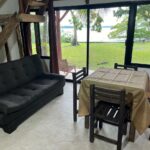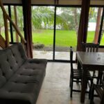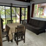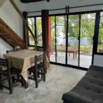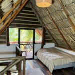 Disfruta de un espacio amplio y acogedor, ideal para descansar en total tranquilidad. En la planta alta encontrarás un dormitorio con terraza privada y vistas espectaculares a la laguna y jardines. La planta baja integra cocina equipada, baño completo y sala-comedor con sofá cama para huéspedes adicionales. Además, podrás relajarte en la terraza frontal con hamaca y contemplar la belleza natural de Xanthus Hotel.