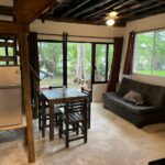 Descubre la tranquilidad de una cabaña amplia y acogedora en dos plantas. Equipada con cocina completa (servibar, cafetera, parrilla, tostador y utensilios), baño con agua caliente, aire acondicionado y wifi gratuito. En la planta superior encontrarás un dormitorio con cama king size y una matrimonial, además de terraza privada con vistas incomparables a la laguna y jardines. En la planta baja, sala-comedor con sofá cama, baño y terraza frontal con hamaca para relajarte rodeado de la naturaleza de Xanthus Hotel.